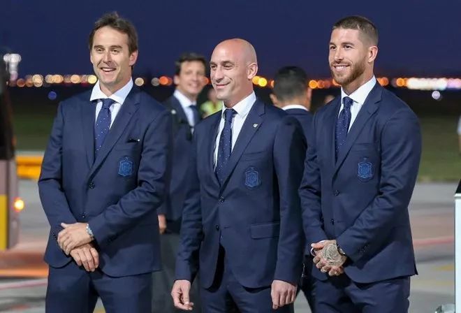 好西裝前胸應該闊挺平整,但中間魯維亞萊斯腰圍明顯做小了,扣子都快撐得崩出去;左一西班牙隊前主帥洛佩特吉,和右一隊長拉莫斯,兩邊前胸接腋窩處均出現嚴重下凹,至少暴露衣服胸圍過寬。