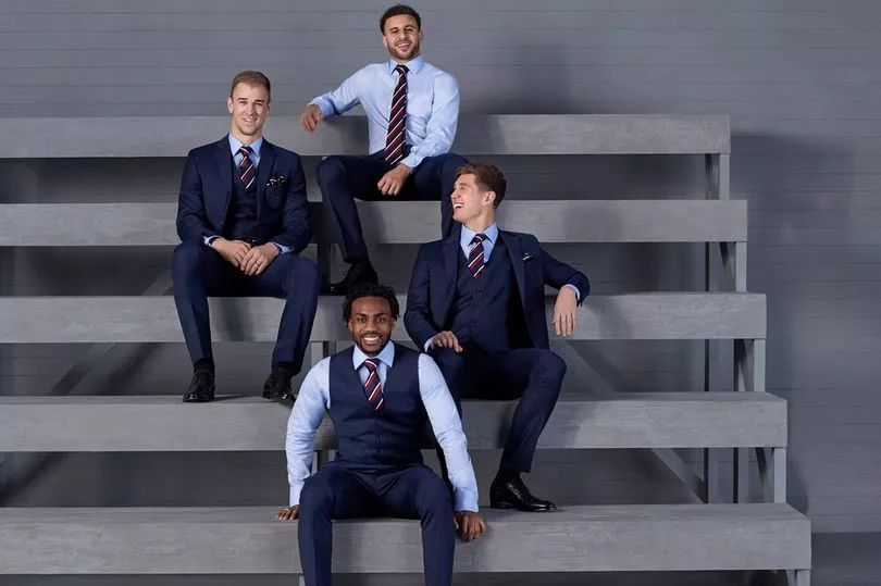其實球員本就身形健碩,足以支持起衣服闊挺的外形,像這種厚胸襯和墊肩的西裝,對普通身材的人有修飾作用,對運動員反而是累贅。換成強調軟結構的意式西裝會更合適。
