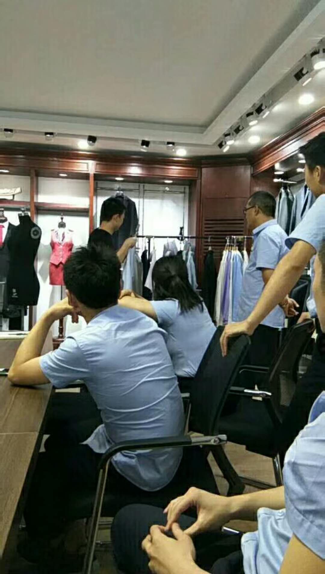 2018年6月22日,公司組織了第二次樣衣評審會,參會的均是在行業內有多年經驗的領導及商務人員,并對各款樣衣進行打分,確定最終的款式.